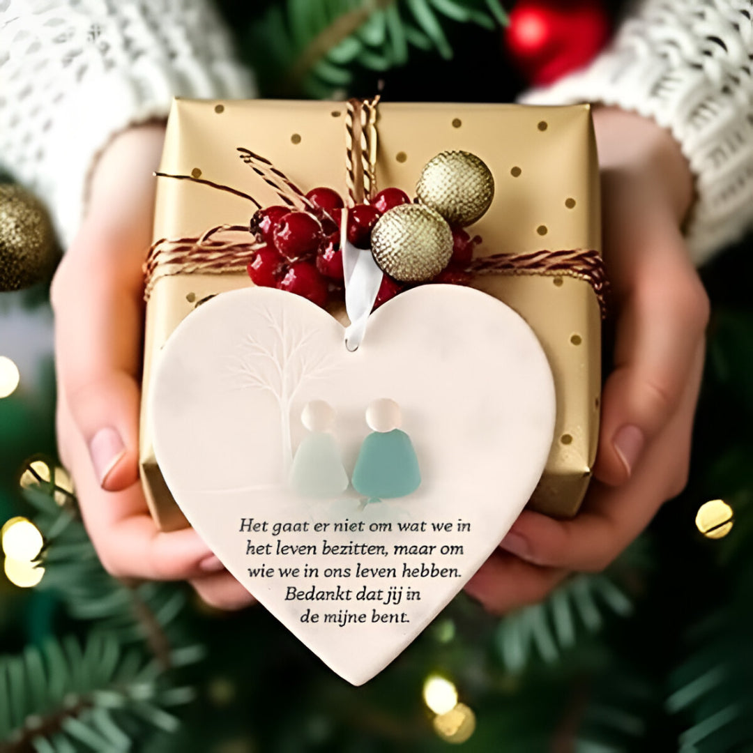 Dit hartvormige ornament dient als een levendige herinnering aan de banden die vrienden delen. Als cadeau verandert het in een waardevol aandenken dat de lach, de steun en de onvergetelijke momenten viert die echte vriendschap kenmerken.π